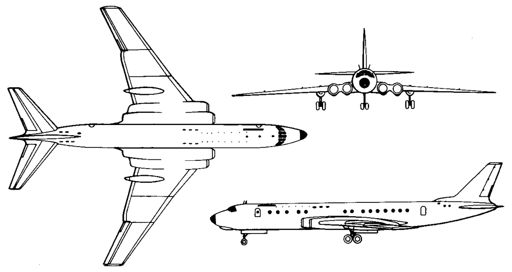 Ту-104 пассажирский самолет с четырьмя ТРД типа АЛ-7. Самолет должен был иметь летно-технические данные близкие к характеристикам Ту-104.