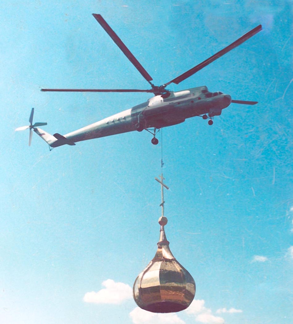 Ростов-на-Дону, где с ее помощью установили на колокольню кафедрального собора огромный позолоченный купол. В 2001 г. вертолет "Комиавиатранса"