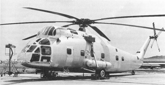 истории вертолетостроения шаг. Они установили летом 1960 г. на первом прототипе над фюзеляжем позади главного редуктора дополнительный тысячесильный газотурбинный двигатель