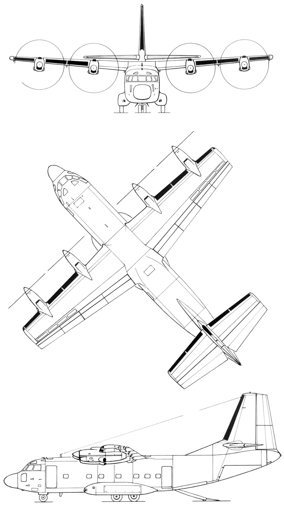 четырехдвигательной транспортной машины с укороченным взлетом и посадкой