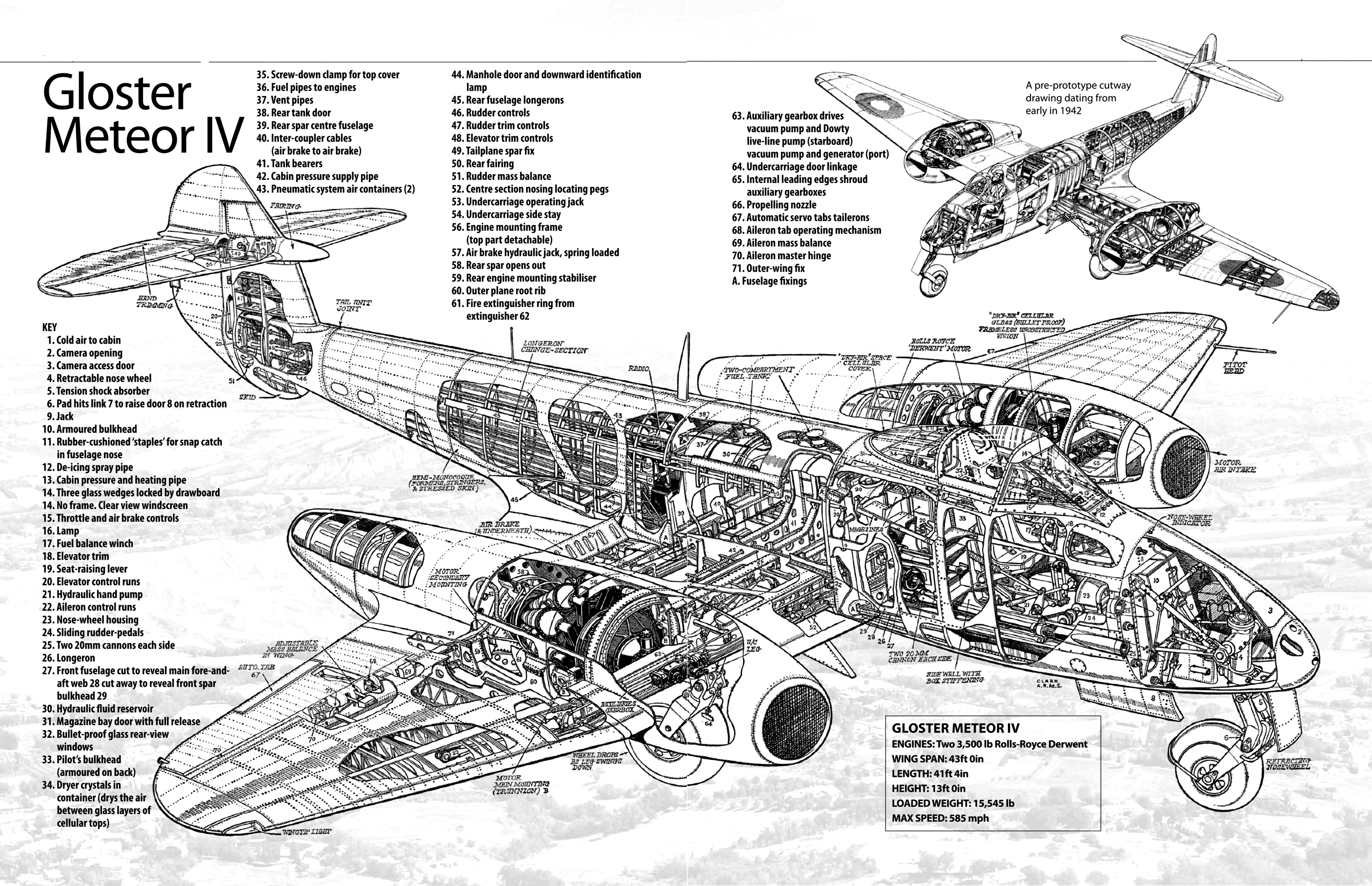 характеристикам намного превосходил своих предшественников и строился крупными сериями не только "Глостер", но с 1946 г. также фирмой "Армстронг Уитворт". Самолеты с длинным крылом обозначались