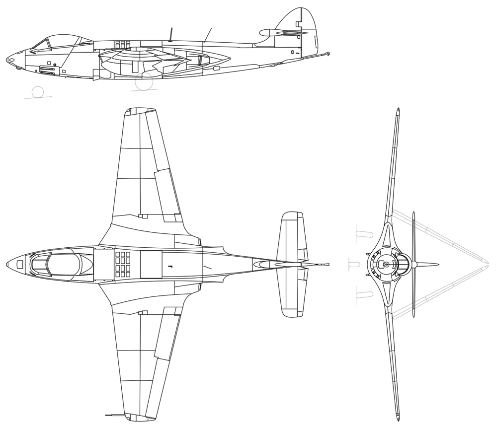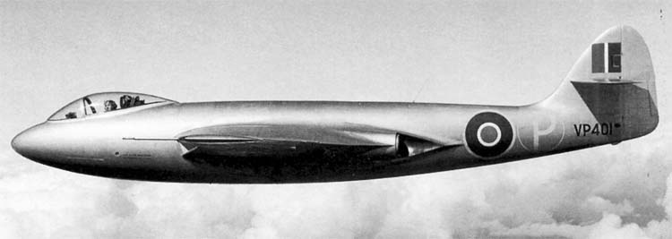 Rolls-Royce Nene тягой 20,25 кН, установленным в фюзеляже. Первый полет прототип