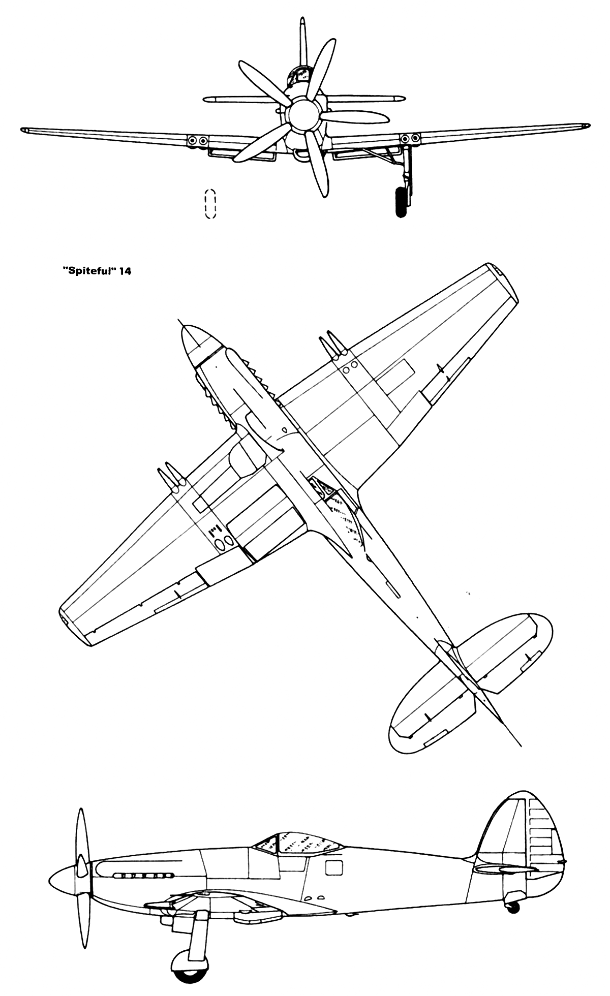 двигателем Griffon 69 и пятилопастным пропеллером, стал образцом для серийной модификации, получившей обозначение Spiteful XIV.