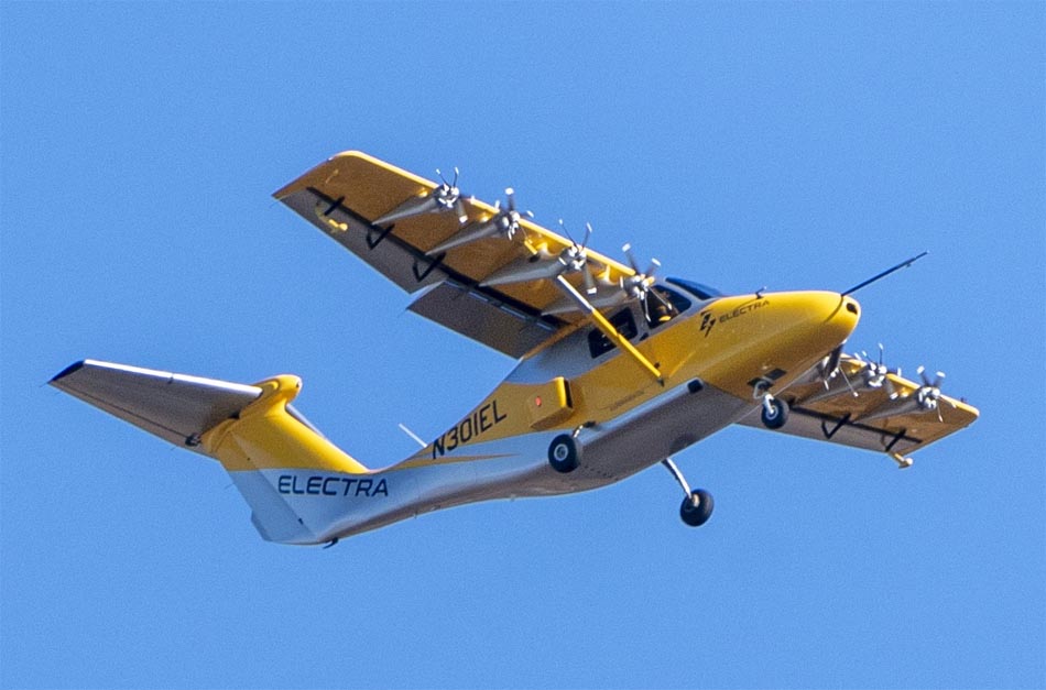 Прототип гибридного самолета с укороченным взлетом и посадкой EL-2 Goldfinch, разработанный компанией Electra, совершил первый сверхкороткий взлет и посадку,