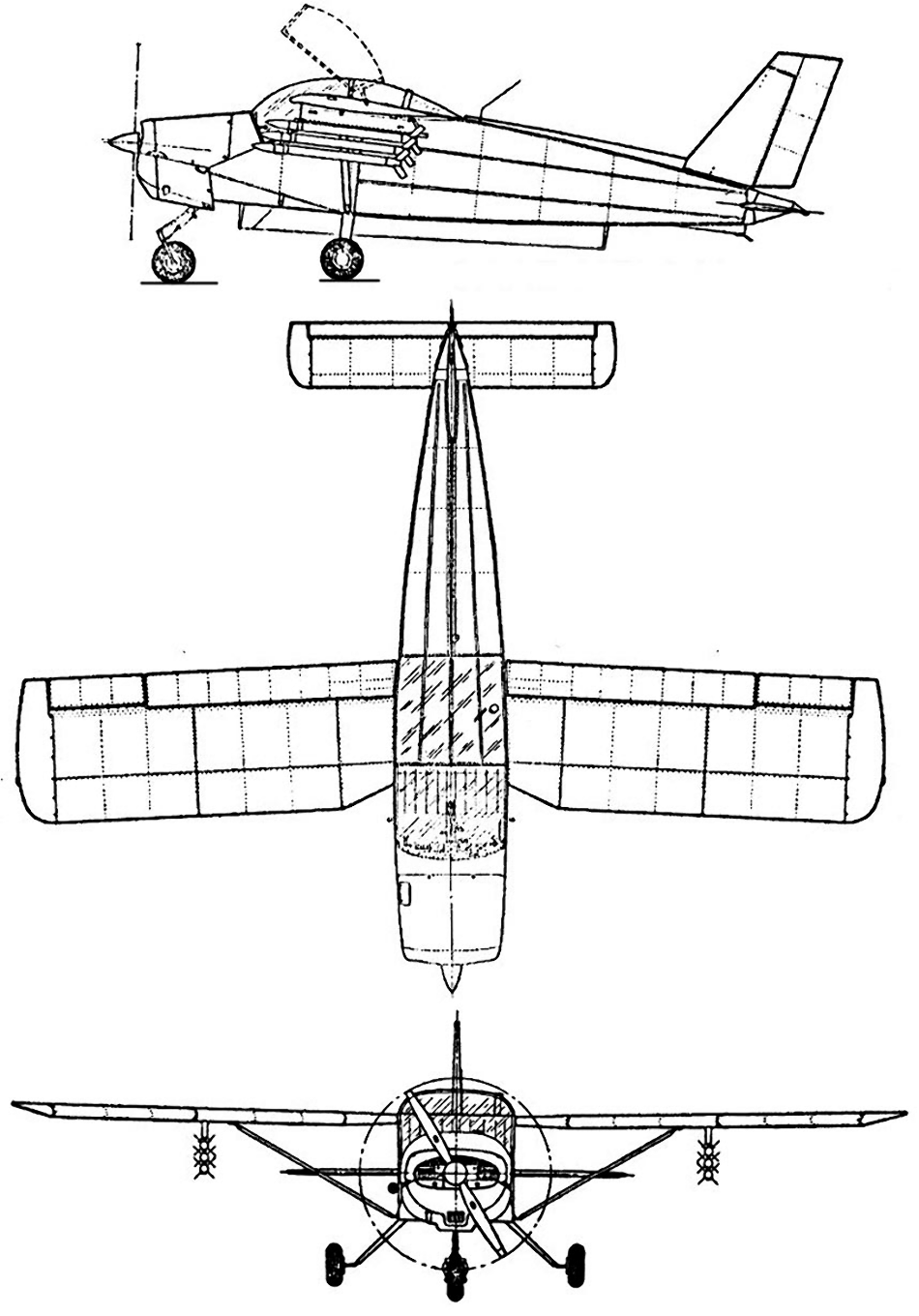 представлял собой подкосный высокоплан с неубирающимся трехопорным шасси