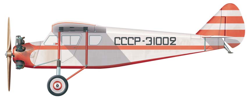 1934-го. "Вечерняя Москва" сообщала, что самолет весь серебристый с голубой обводкой". В разное время он имел опознавательные знаки "СССР-Э1002" (на испытаниях в НИИ ГВФ) и "CCCP-N1002" (в