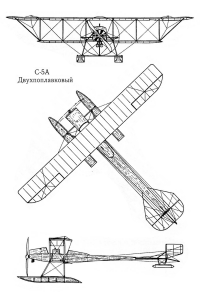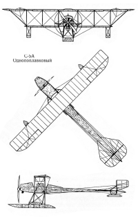 Однопоплавковый С-5А отличался от построенного в 1912 г. самолета только размещением поплавков: вместо двух основных поплавков был один центральный такого же объема и с аналогичными обводами.