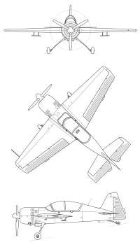 М-14П (360л.с.). Самолет имеет взлетную массу 990 кг. Развивает максимальную скорость 460 км/ч. Скороподъемность - 15 м/с. Самолет небольшой по размерам: длина 6,91 м, размах 8,16 м, площадь крыла