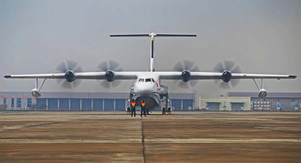 Самолет AG600 имеет длину 39,3 м, размах крыла 39 м и заявляемый