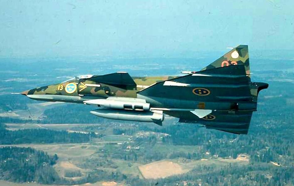 тремя камерами Ska-34 с фокусным расстоянием 75 см. Поставки разведчиков начались с апреля 1977 г. Шведские ВВС получили 26 машин этого типа. Позже, часть