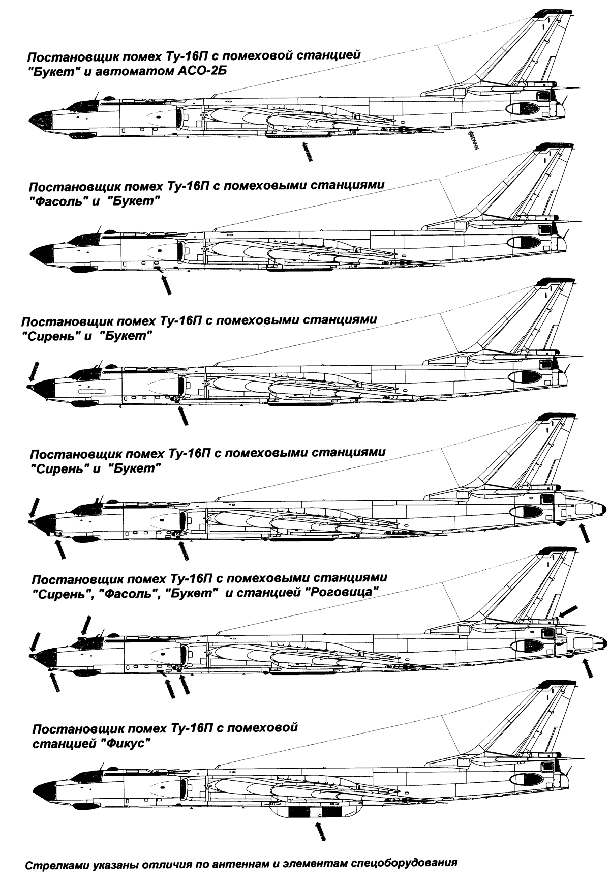 "Букет" или Ту-16 "Букет"). Они предназначались для противодействия наземным РЛС дальнего обнаружения и наведения, а также РЛС целеуказания ЗРК. С высоты 10000-11000 м один постановщик помех мог прикрыть группу из нескольких самолетов, идущих в строю в условном круге диаметром 3000-5000 м в полусферической зоне с диаметром в основании 600-700 км. Для своего времени