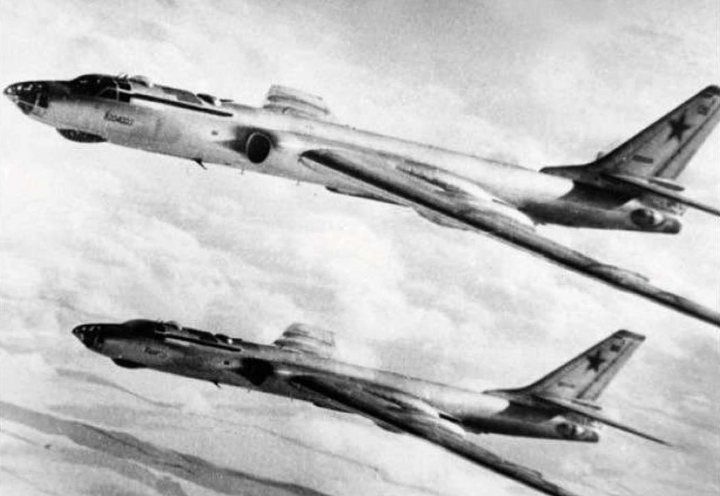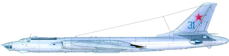 No.34 и No.45 под большим радиопрозрачным обтекателем. Испытания усовершенствованной системы постановки помех проводились на Ту-16П
