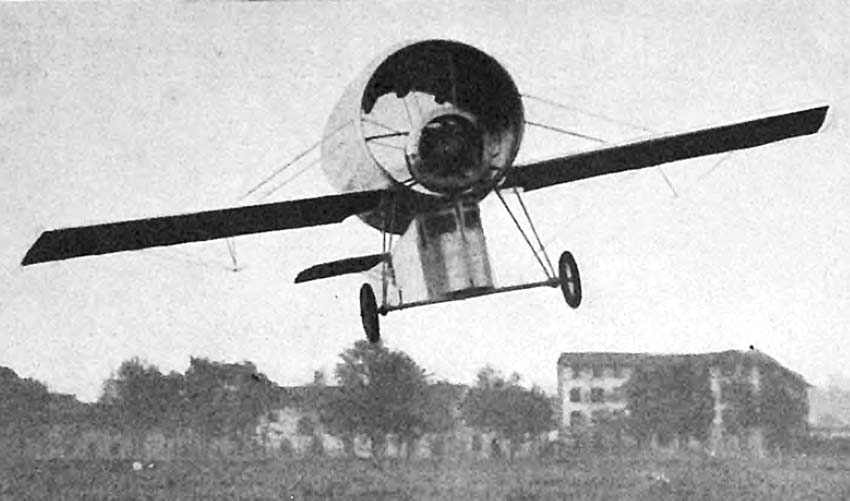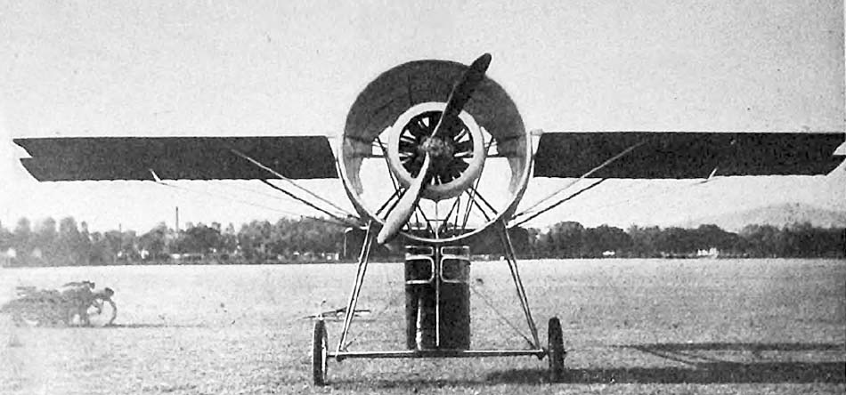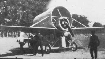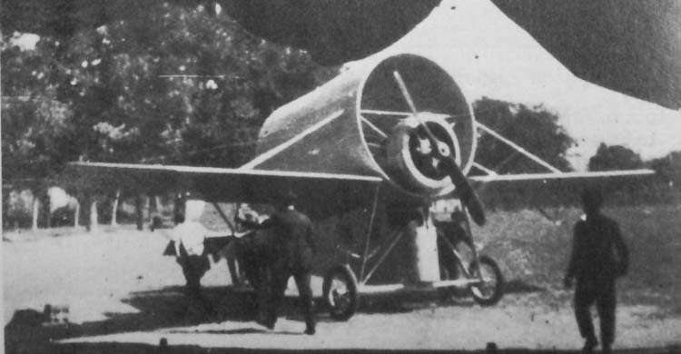 Довольно необычный самолет вместо нормального фюзеляж имел широкую трубу,