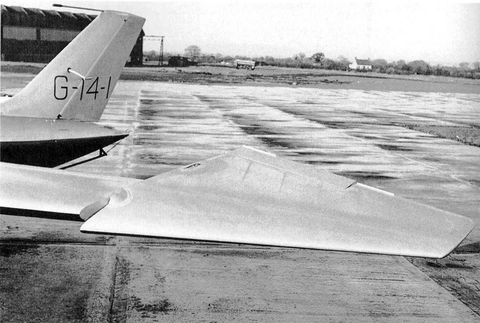 стабилизатор отсутствовал, внешние секции крыла синхронно поворачивались,