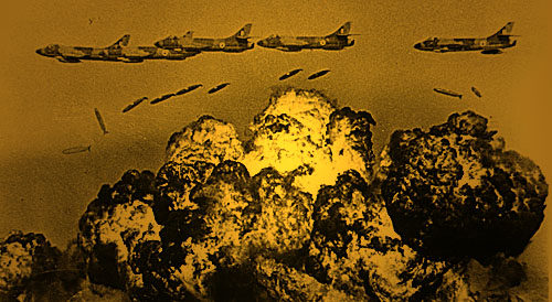 Возмездия не заставило долго ждать. Уже утром следующего дня около 70-ти индийских истребителей-бомбардировщиков "Хантер" и Су-7* звеньями по