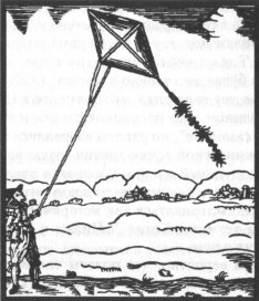 В XVII в. плоский воздушный змей получил широкое распространение в европейских странах. Судя по описаниям и иллюстрациям в книгах этого периода (рис. 1.4), он имел ромбовидную форму, был снабжен нитевидным хвостом для улучшения путевой устойчивой и мало отличался от современных воздушных змеев. Наряду с его использованием как средства для пиротехнических забав, воздушный змей все чаще применялся в качестве детской игрушки.
