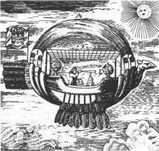 (1) Существует гипотеза, что рисунок гравера неточен и в самом проекте предлагался значительно более совершенный аппарат типа планера [223, с. 15]. Вместе с тем, имеется предположение [241, с. 506] ,что на рисунке изображен не летательный аппарат тяжелее воздуха, а гондола аэростата (известно, что Гусмао проводил опыты с моделями аппаратов легче воздуха). Однако обе версии не имеют надежных доказательств.