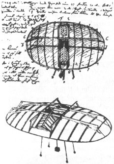 (1) Несколько рисунков летательных аппаратов, предложенных Л. да Винчи, были включены в малоизвестную работу Gerli "Desegni di Leonardo da Vinci" (1793 г.). Выход книги совпал с бурным развитием воздухоплавания, и работы Леонардо в области летательных аппаратов тяжелее воздуха расценивались в то время как курьез.