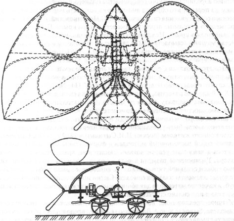 Рис 2.7.Проект самолета М.Лу. Чертеж из книги Лу.