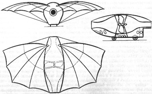 В проекте 1799 г. предусматривались основные элементы самолета - неподвижное крыло, фюзеляж, хвостовое оперение, колесное шасси. И все же не следует переоценивать его историческое значение, утверждая, например, что в 1799 г. Кейли впервые предложил отделить систему образования подъемной силы от движителя и создал на основе этой концепции первый проект самолета [219, с. 203]. Нельзя забывать, что большинство конструктивных идей, предложенных английским изобретателем, было выдвинуто ранее в проектах Леонардо да Винчи, Э.Сведенборга и М.Бауэра. Как и предшествующие разработки, проект Кейли обладал рядом существенных недостатков. Отсутствие двигателя, малоэффективный весельный движитель и плохие несущие свойства крыла малого удлинения делали невозможным полет на предложенном им аппарате.