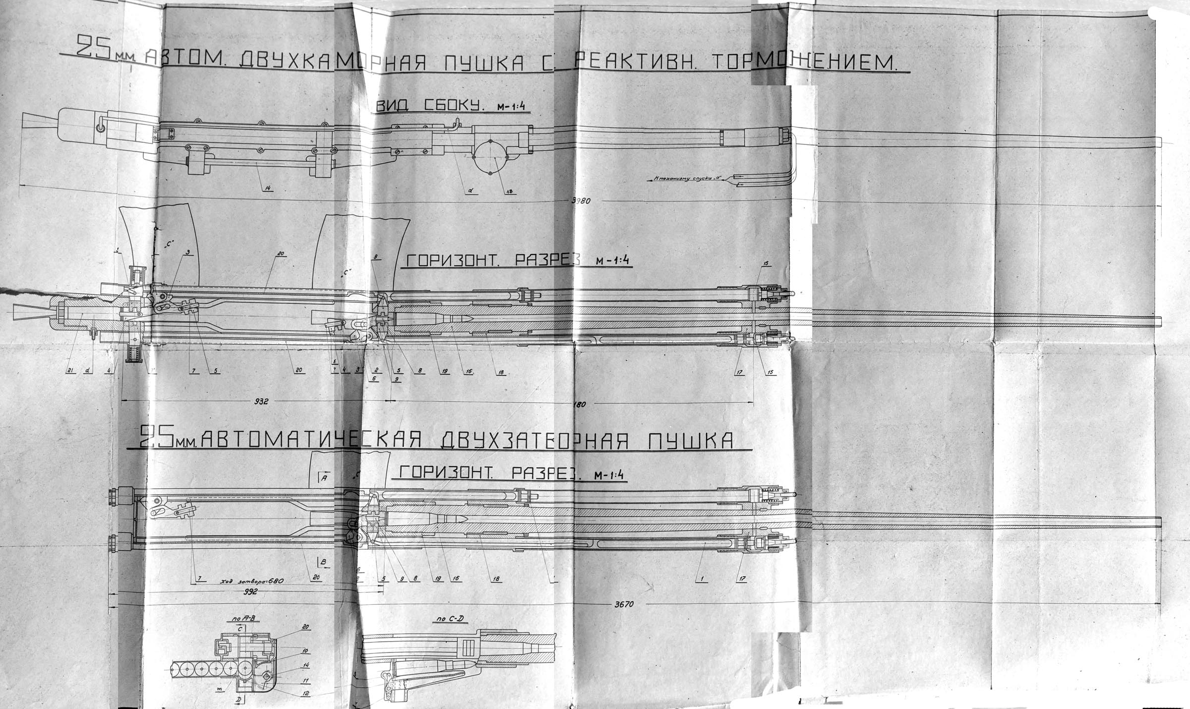 Одним из проектов была безоткатная автоматическая пушка калибра 25 мм АДКП (автоматическая двухкаморная пушка).