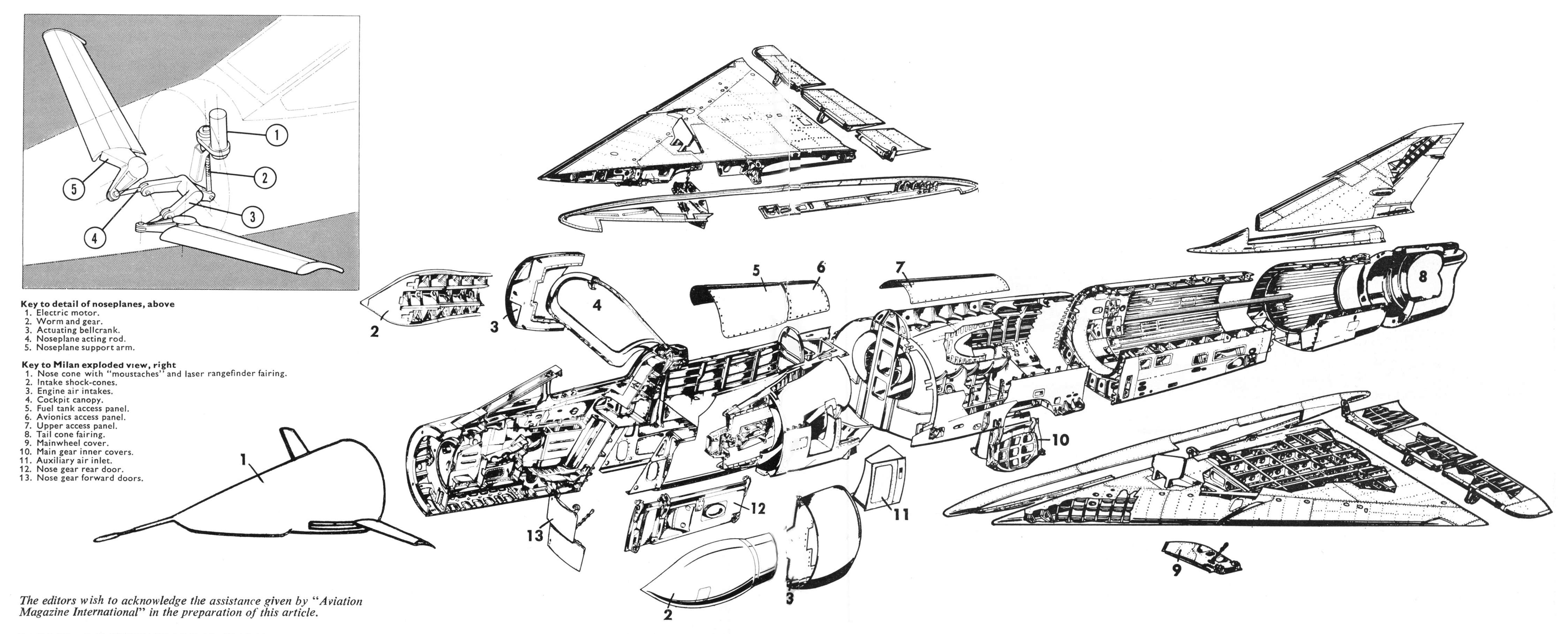 Самолет "Мираж-Милан" по конструктивной схеме в некоторой степени аналогичен самолетам ХВ-70А фирмы "Норт Американ" и "Гриффон" 1500 фирмы "Нор". Новым является то, что