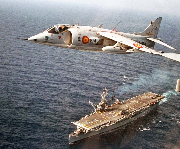 палубы, были направлены три испанских AV-8S, один TAV-8S и восемь пилотов.