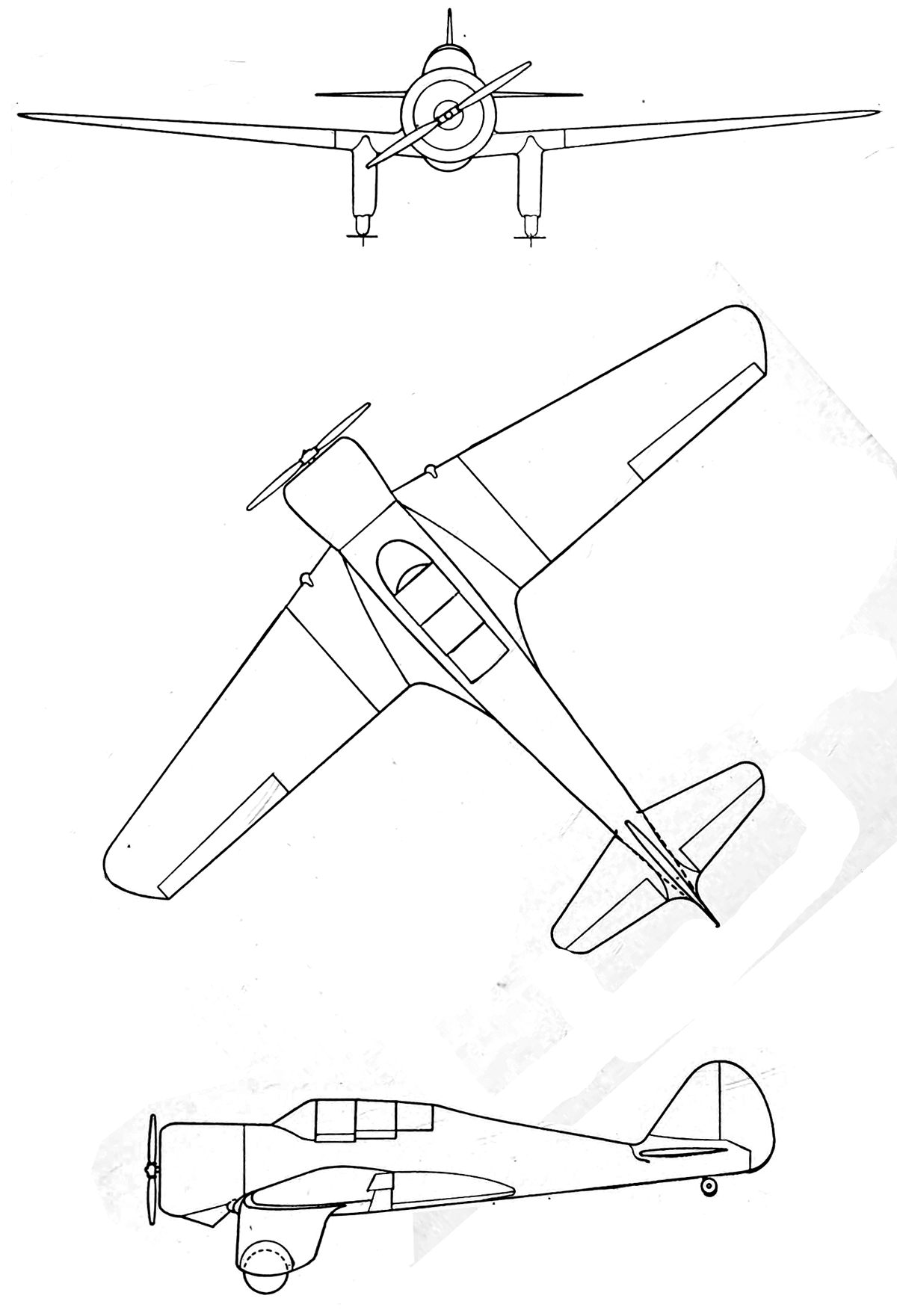 цельнометаллический двухместный моноплан с низкорасположенным крылом,