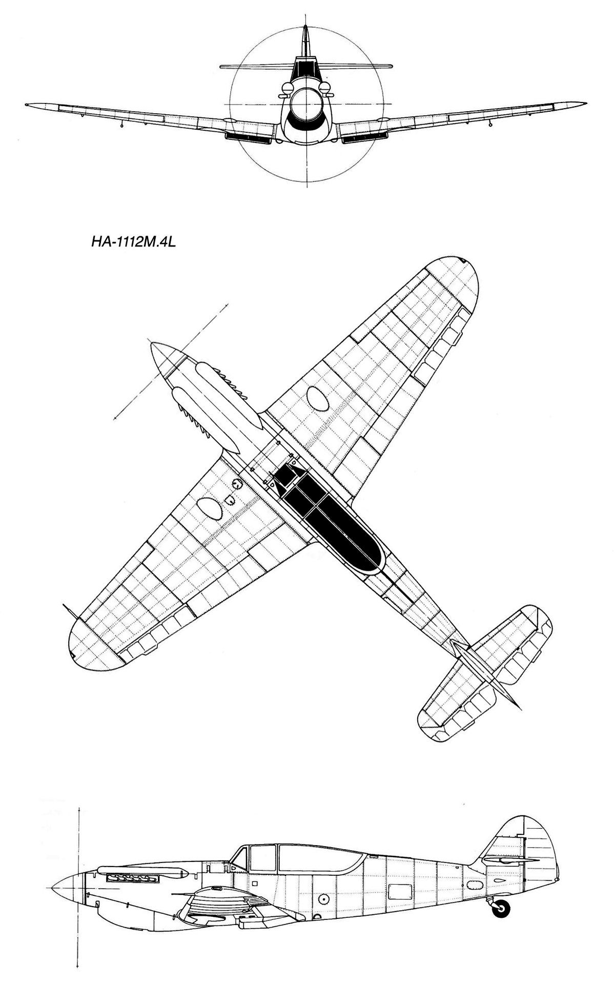 Моторами "Мерлин" оснастили и два учебных HA-1112-M4L Вообще, среди 239 "мессеров", построенных испанцами, 170