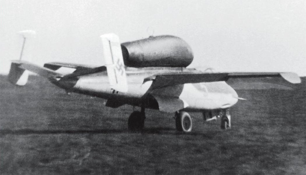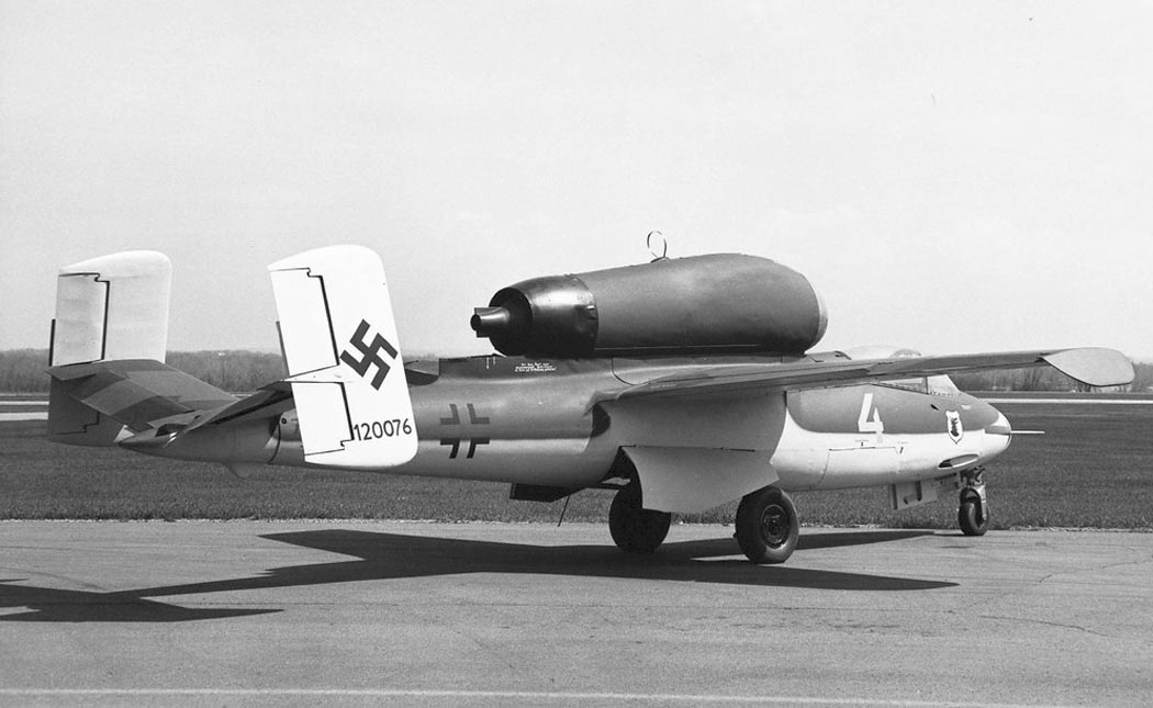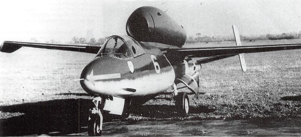 М12 - Jumo 004D) размещался в мотогондоле над фюзеляжем. Он имел семиступенчатый компрессор, 16 камер сгорания с форсунками и одноступенчатую