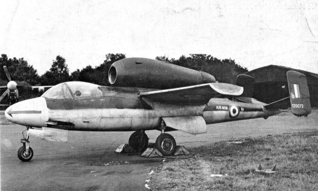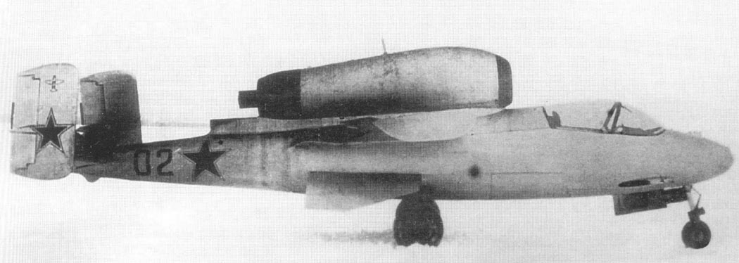 стоек шасси. На гребне фюзеляжа устанавливался турбореактивный двигатель,