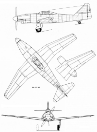вариант будущего Ме.262 с прямым крылом и трехопорным шасси с хвостовым колесом.