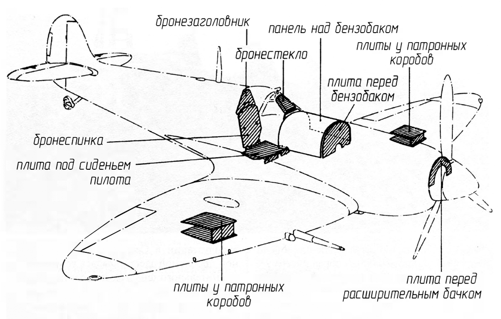 Броней защищался пилот, топливные баки, радиаторы и расширительный бачок системы