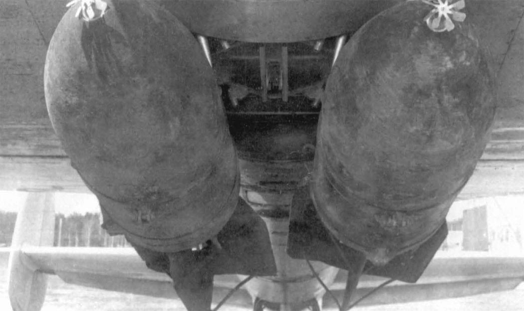дистанционной трубки. В другом, более позднем варианте, в кассеты К-100 укладывались 96 бомб весом по 2,5 кг. В то время бомбардировочное вооружение для поражения воздушных целей считалось довольно