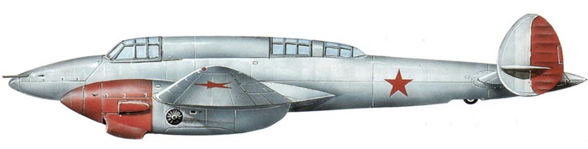традиционную компоновочную схему. На машине стояли два новейших по тем временам мотора М-105 с турбокомпрессорами ТК-2, включенными в силовую схему мотогондол, и винтами ВИШ-42. Турбины компрессоров