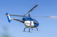 популярный Robinson R22. Объём топливного бака 70 литров обеспечивает продолжительность полёта до трёх с половиной часов на крейсерской скорости 120-150