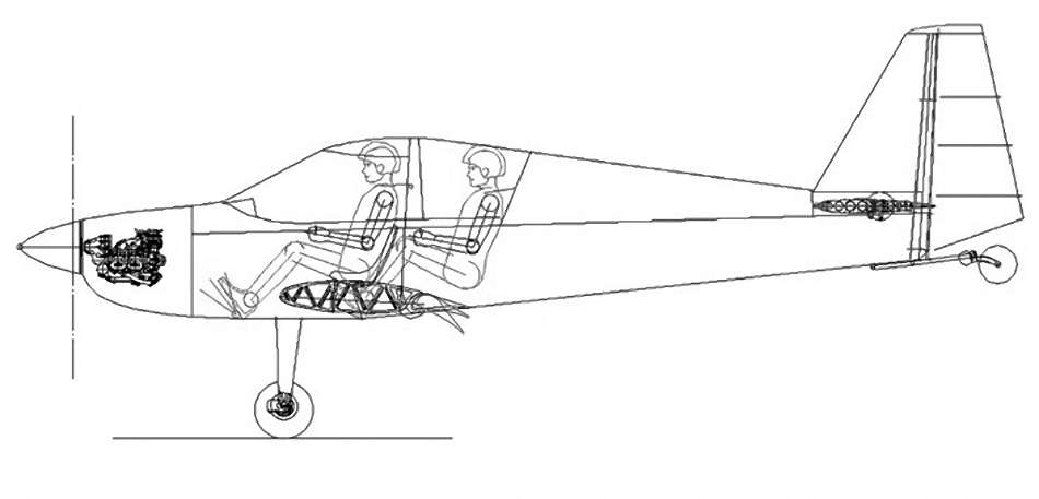 диапазон центровок двухместного самолета-тандема, пришлось вынести двигатель