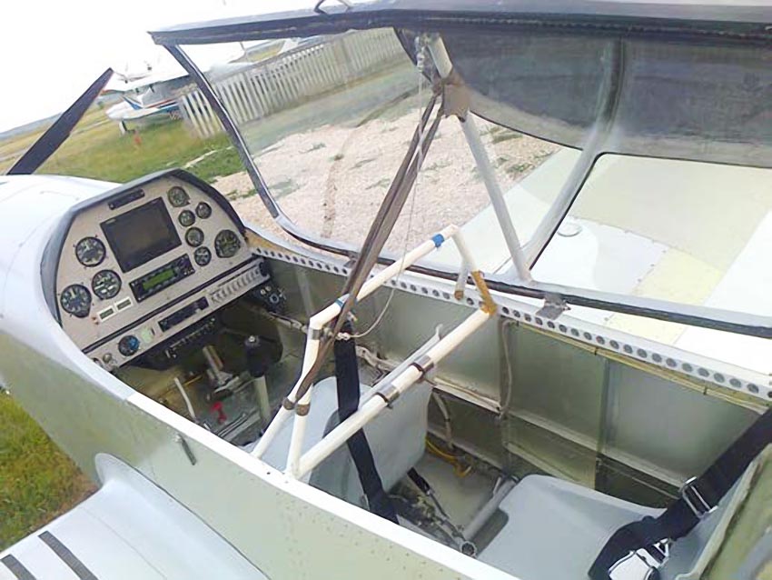 кресло пассажира. Место пассажира оборудовано ручкой управления самолетом (РУС).