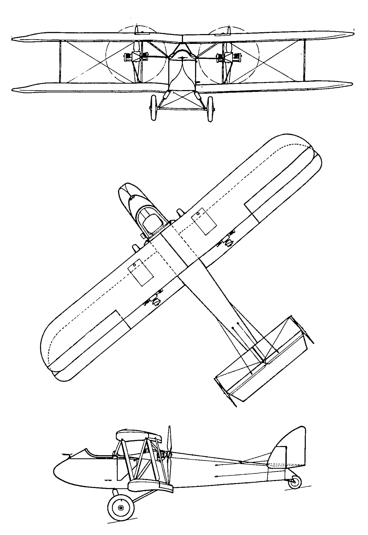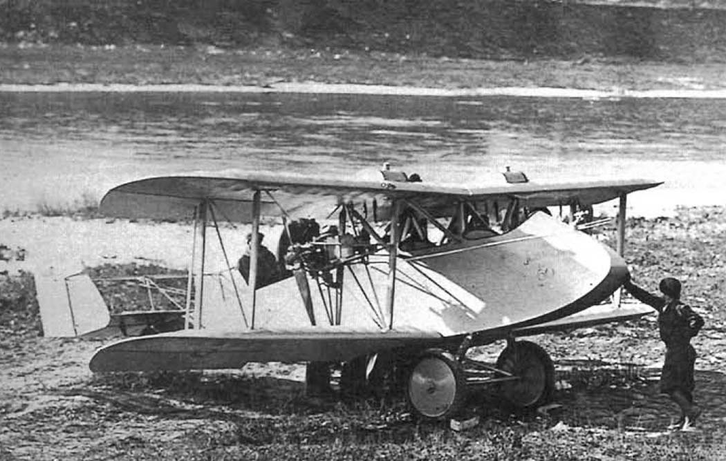 двухместный одностоечный биплан, оснащенный двухцилиндровыми двигателями