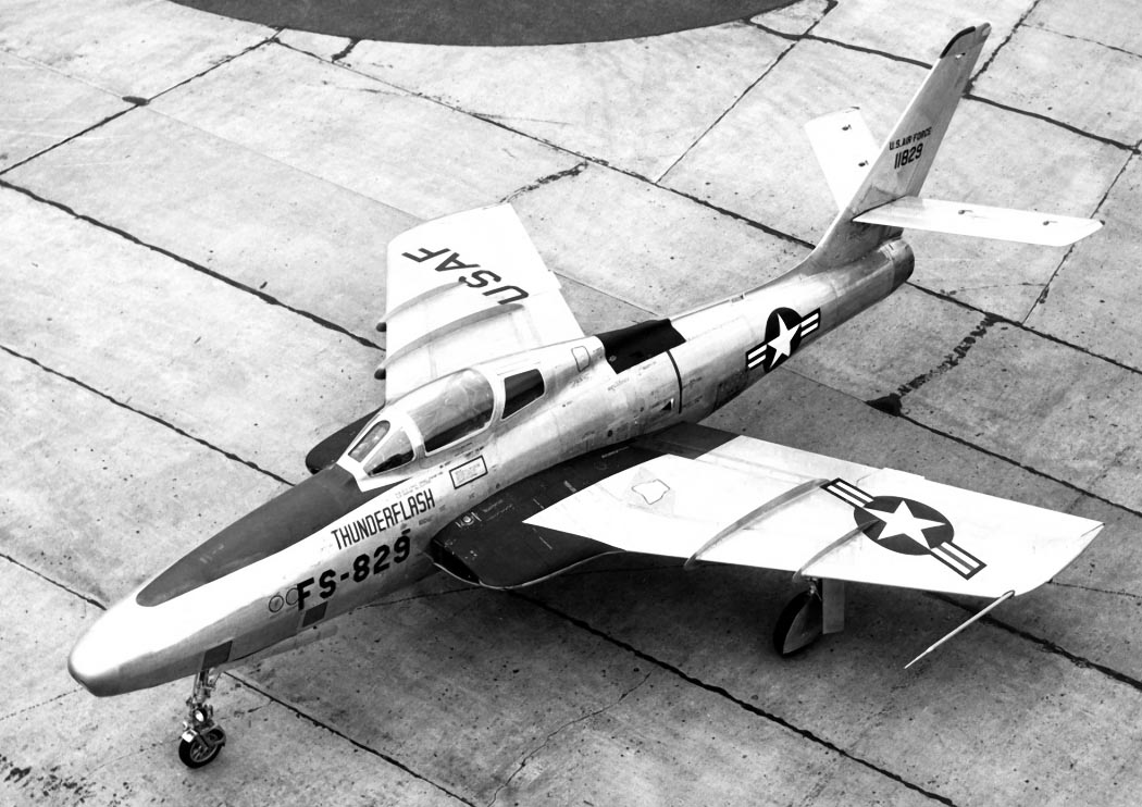 RF-84F Thunderflash, оснащенный воздухозаборниками в своде крыла и фотокамерами в