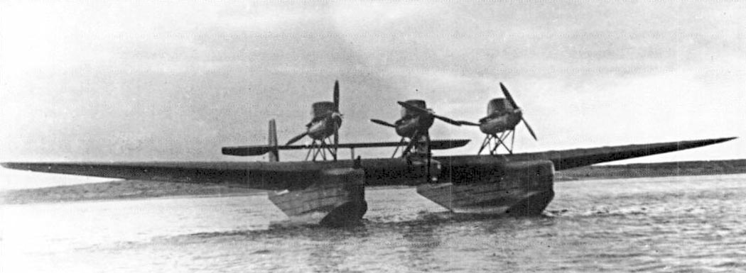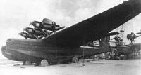 В 1938 г. в ЦАГИ велись исследования четырехмоторного двухлодочного гидросамолета со взлетным весом 54 т. Особенностью этого проекта являлось несимметричное поперечное сечение лодок, позволяющее