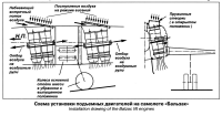 двигателей используется сжатый воздух от компрессора маршевого двигателя. Запуск производится в два приема, по четыре двигателя одновременно. Надфюзеляжные выдвижные ковшовые